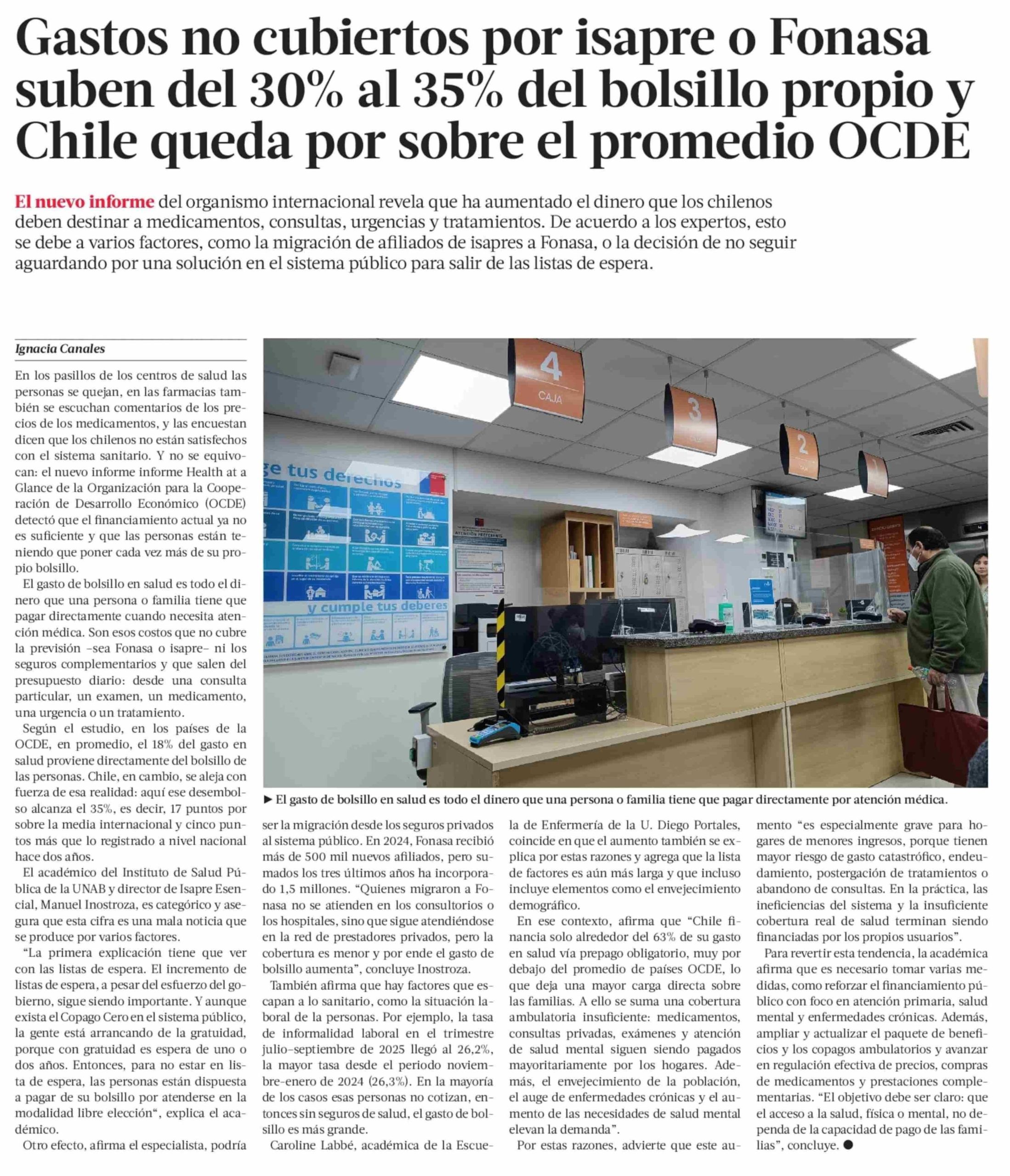 Caroline Labbé analizó en La Tercera el aumento de los gastos de bolsillo en salud y su impacto en los hogares