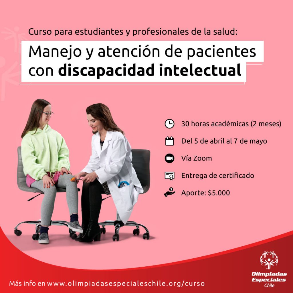 Olimpiadas Especiales Chile estará dictando el curso “Manejo y atención de personas con discapacidad intelectual” desde el 5 de abril al 17 de mayo. Las siete sesiones con las que contará el curso estarán dirigidas para todo el personal de salud (estudiantes, docentes, profesionales e instituciones del área) que quiera certificarse en el tema.